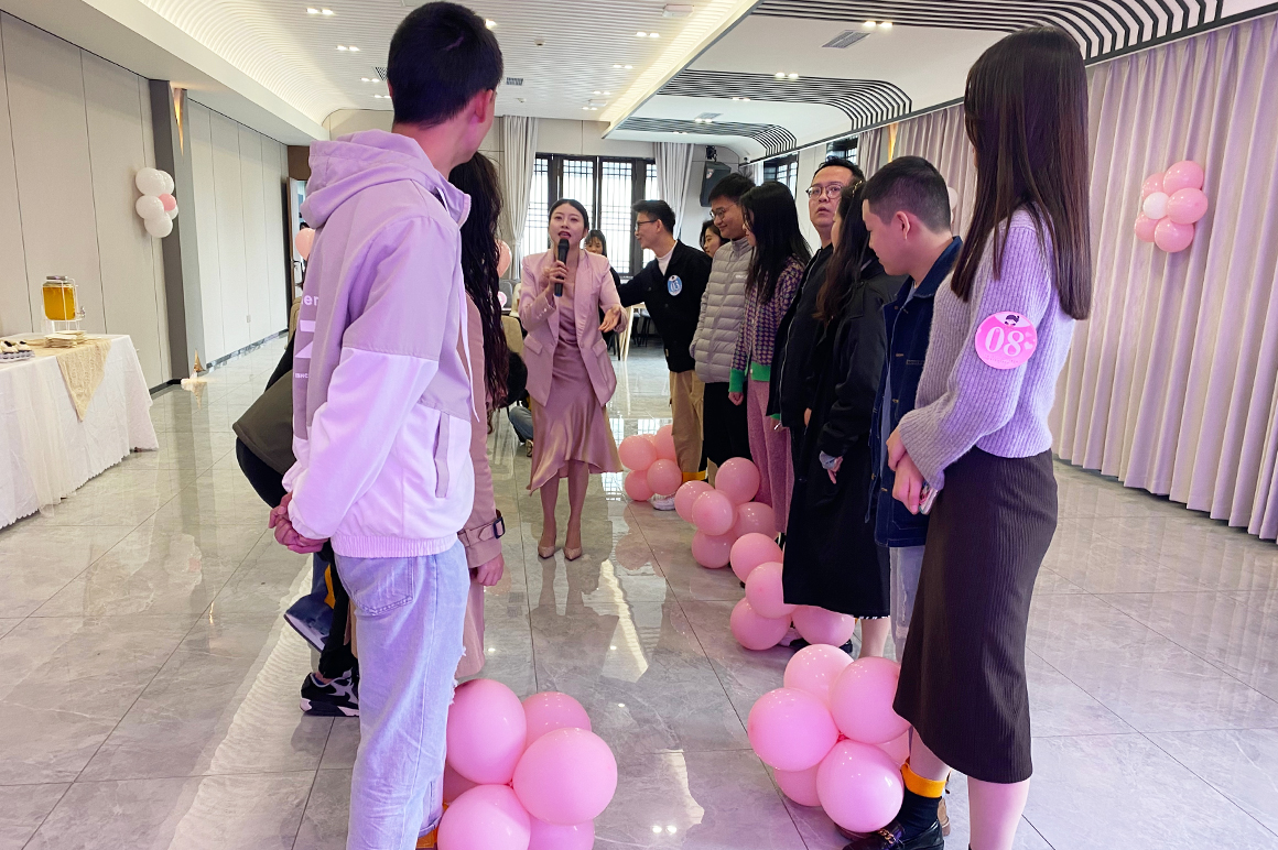 游戲規則:年會主持人宣布游戲開始,并喊出一個錢數(比如2塊、3塊5等),然后參賽者需要在最短的時間內抱團組成相應錢數。比如喊的是2塊錢,就需要2男或1男2女或4女抱團。
