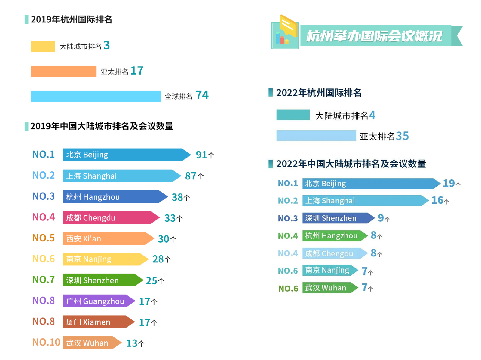 杭州市曾舉辦過許多國際會議,其中最著名的當屬G20杭州峰會和杭州亞運會。G20杭州峰會于2016年9月4日至5日在中國浙江省杭州市舉辦。杭州亞運會于2023年9月23日至2023年10月8日在浙江省杭州市、寧波市、溫州市、紹興市、金華市、湖州市等多地同期舉辦;2023年9月23日晚,第十九屆亞洲運動會開幕式在浙江省杭州市隆重舉行。國際大會與會議協會(ICCA)發布的《2022 ICCA國家及地區排名分析報告》對全球國際會議的舉辦情況進行了分析排名,2022年中國以109場國際會議名列第26名,亞太62座城市共計舉辦了1252場國際會議,杭州以8場國際會議數量位列亞太城市第35名、中國大陸第4名。而在2019年,杭州舉辦國際會議數量排名在全球5214個城市中位居第74位,較上一年提升了23位,在亞太870個城市排名中位居第17位,大陸城市排名第3位。在本文,杭州會議服務公司伍方整理了在杭州舉辦過或即將在杭舉辦的有影響力的國際會議信息,供大家參考。