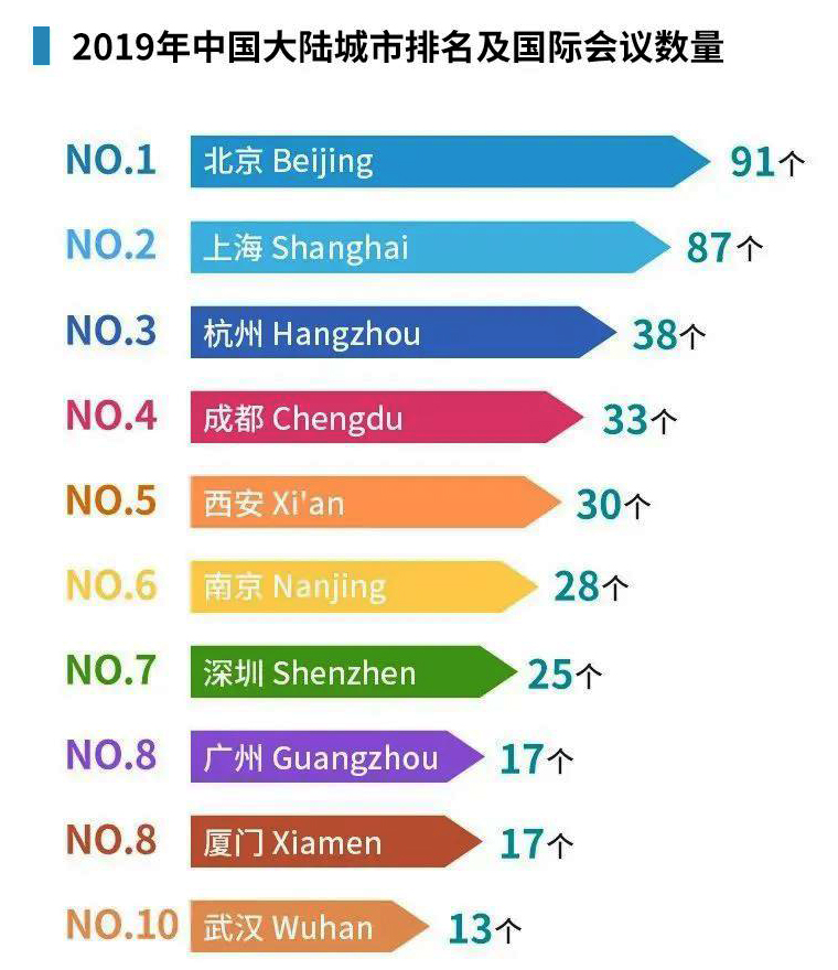 ▲2019年中國大陸城市排名及國際會議數量